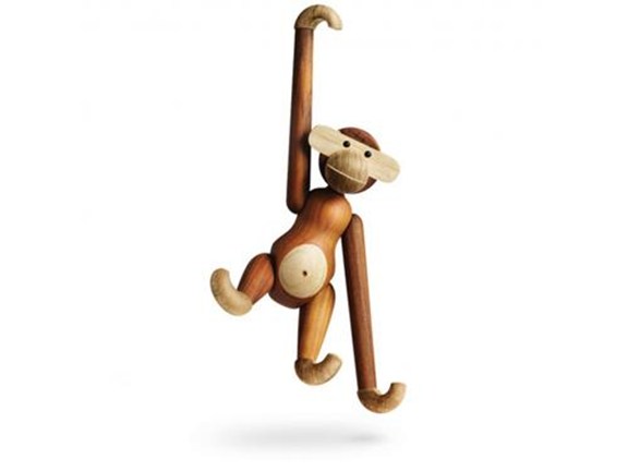 Monkey Small van Kay Bojesen is een absolute klassieker binnen het Scandinavische design. De aap slingert al geruime tijd rond en is geboren in het jaar 1951. Zijn grappige blik, gekleurde buik en prachtige silhouet heeft al menig kinderkamer omgetovert tot jungle. Maar ook op de Deense televisie is het een veel gebruikte mascotte of wordt hij weggegeven als prijs bij quizprogramma's. Hij trekt graag op mijn zijn grote broer: Monkey Large.