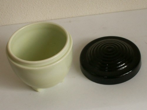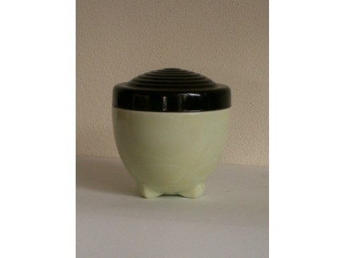 gedekseld, persglazen tabakspotje, Leerdam, ontwerp Copier, ontbijtservies Colopal, 1932, diverse publicaties, H. 11 cm, Ø 10,5 cm