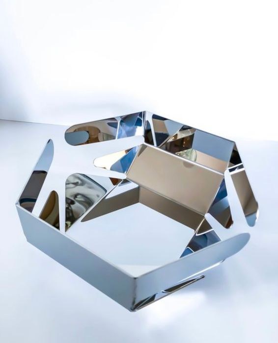 De bijzondere Alessi Basket behoort tot de Celata-collectie, volledig gemaakt van gepolijst 18/10 roestvrij staal. De mand meet 26 x 22,5 x 9 cm. Het is ontworpen door ontwerper Giulio Iacchetti. De speciale vorm maakt hem uniek in zijn soort en geeft een speciaal tintje aan de tafel. Bij het ontwerpen van de Celata-mand liet de ontwerper zich inspireren door de contouren van het beweegbare deel van de helm die ridders in de middeleeuwen gebruikten. De armet beschermde het gezicht en liet de ridder tegelijkertijd naar buiten kijken: de mand, gemaakt door het snijden van plaatstaal, bootst de spleetdelen van dit vizier na, waardoor een afwisselend effect van lege en volle ruimtes ontstaat, waardoor licht- en schaduwspelletjes worden onthuld .
