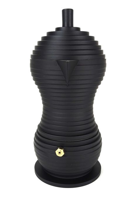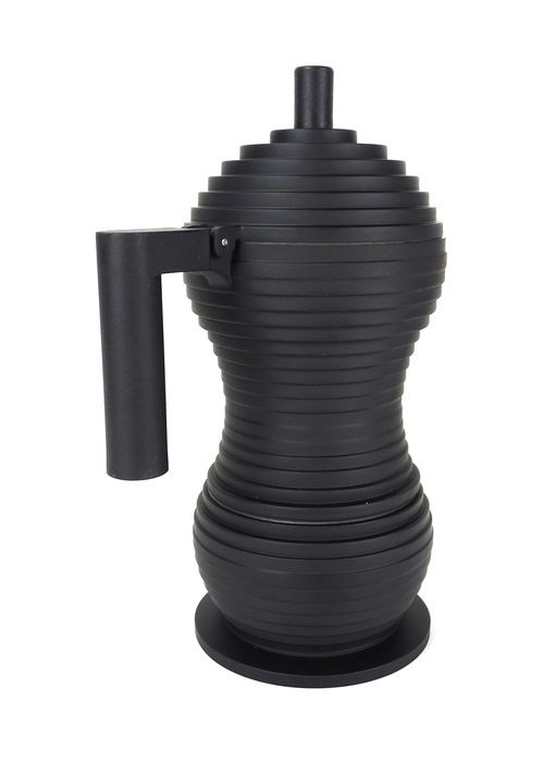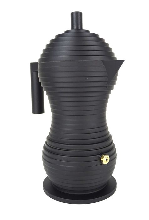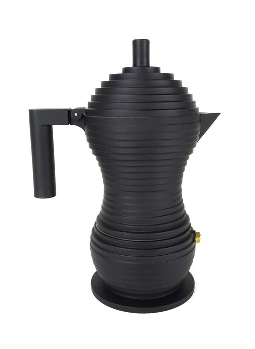 The wonderful stepped effect on the exterior is the result of alternating the thickness of the walls to facilitate heating and cooling. The coffee that comes out is very good. Guaranteed by Alessi and Illy.