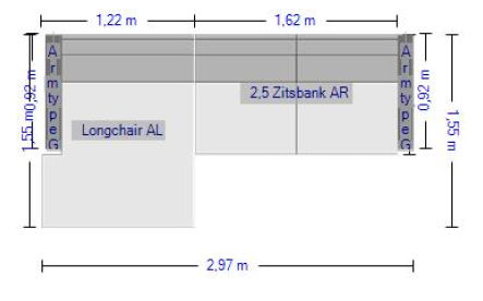Diepte: 155 cm bij longchair