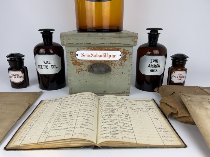 Dit prachtige lot antieke, werkelijk historische apothekersvoorwerpen dateert uit de late 19e eeuw.