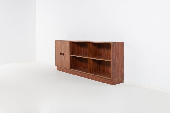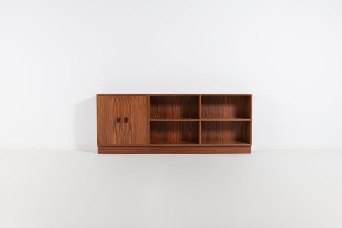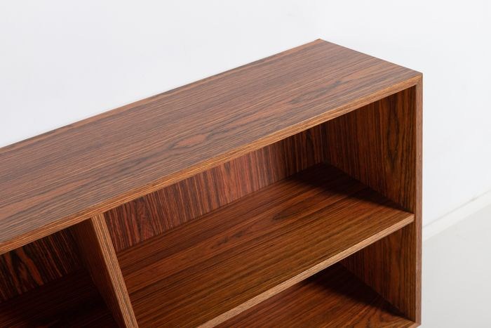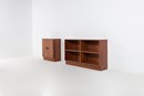 Set van 2 vrijstaande kasten van walnootfineer geproduceerd in Denemarken, jaren 70. Voorzien van planken.