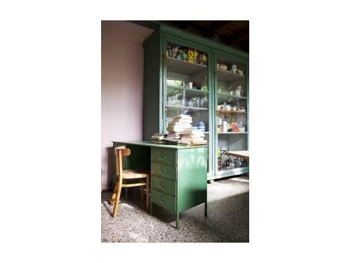 Retro bureau, of, new vintage groen, staal met 4 laden en een deur. Vintage look. Stond in de VT Wonen op de cover! De levertijd van de het bureau is maximaal vier weken maar in veel gevallen korter, informeer bij José Klijn via: j**e@rootsmann.nl Dit retro bureau (nieuw, maar met een oude look) is geinspireerd op de oude bureaus uit Nederland uit de jaren '30 en '40. Geen NEN-normen en andere Arbo-eisen, wel veel schoonheid. In Nederland worden op het gebied van design hele mooie dingen gemaakt. Nu, maar ook toen. Ook op het gebied van kantoorinrichting. Dit retro bureau kan op jouw kantoor staan, als bureau "er bij" of in je woonkamer. Mooi met een nieuwe Mac er op! Retro bureau gratis bezorgd. Dit bureau wordt gratis door ons bezorgd. We maken natuurlijk eerst een afspraak met je, voordat we langskomen. We bezorgen tot achter de eerste deur op de begane grond. Help je zelf even mee? Dan ook de woonkamer in, alleen begane grond. De kast wordt in zijn geheel gelast, kan dus niet gedemonteerd worden. Lees onze bezorgvoorwaarden op de pagina 'service' onder het kopje 'bezorgen en kosten en levertijden'