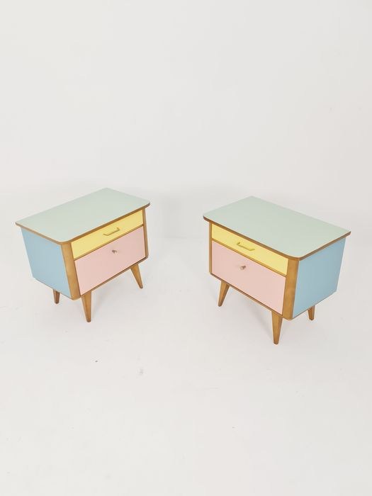 Twee mooie ladekasten/nachtkastjes uit de jaren 50.