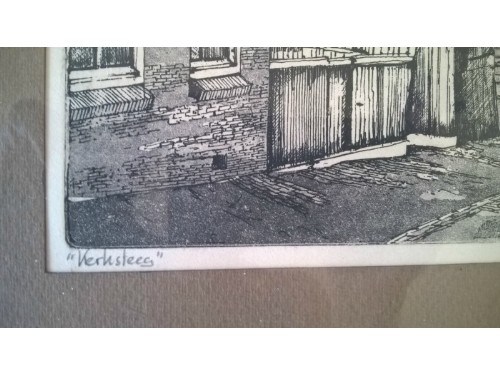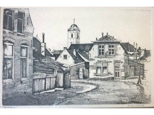 Een prachtige ets van de Kerksteeg te Katwijk, gemaakt door D.J. van Catwijck. De ets is ingelijst achter glas met passe-partout in een eikenhouten lijst. De totale afmetingen zijn 33x43 cm. Kijk ook eens bij mijn andere advertenties.