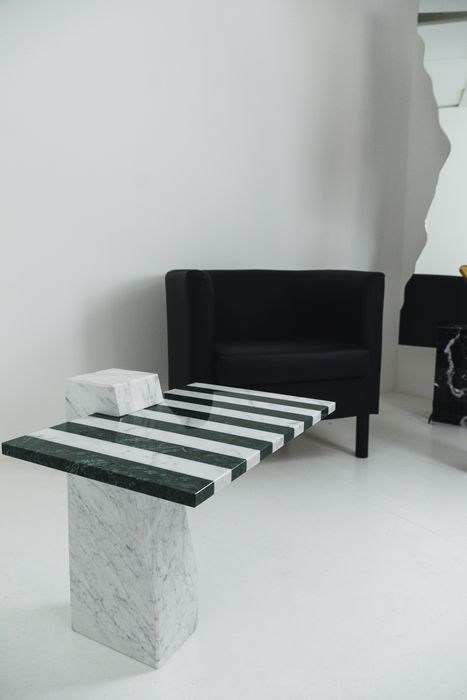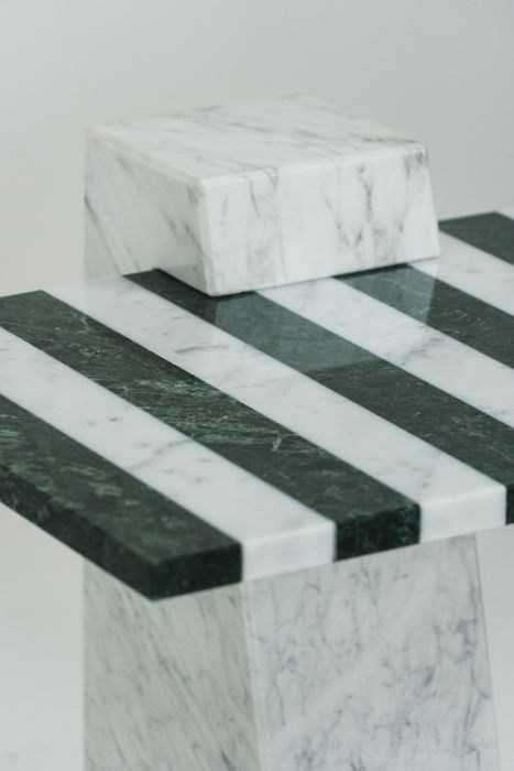 De zo geproduceerde meubelstukken getuigen van respectvol gebruik en verwerking van natuursteen.