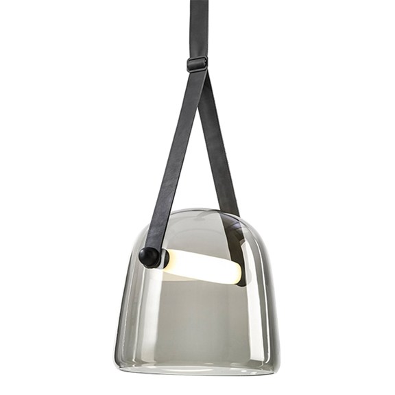 Brokis Mona Hanglamp Large Grijs - Zwart Leer