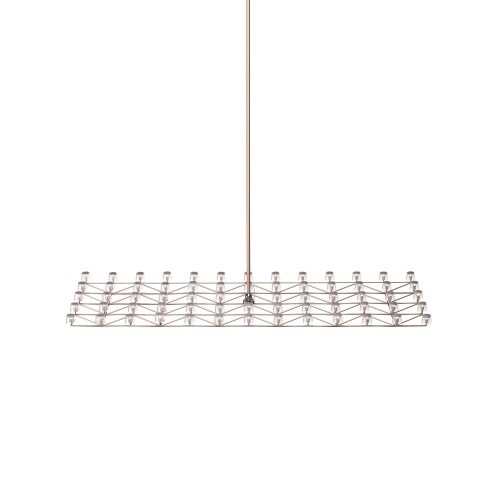 De Moooi Space-Frame Hanglamp Koper (8719624494943) is ontworpen voor het design verlichtingsmerk Moooi, één van de populairste merken op het gebied van design lampen en verlichting. Designer Marcel Wanders is verantwoordelijk voor deze fantastische lamp. Het assortiment van Moooi waar de Space-Frame Hanglamp Koper onderdeel van is, is verdeeld in verschillende groepen. Dit zijn tafellampen, hanglampen, plafondlampen, wandlampen en vloerlampen. De Moooi Space-Frame Hanglamp Koper is 123 cm breed en 13 cm hoog. De lamp is vervaardigd van de materialen Metaal en wordt standaard geleverd met een snoerlengte van 10 m. Moooi raad aan dit armatuur te combineren met een 0,5W Interne LED lichtbron. Naast design is het licht een belangrijk aspect van de lamp, de Space-Frame Hanglamp Koper geeft Alle richtingen. De Moooi Space-Frame Hanglamp Koper is goed ontvangen in de wereld van design verlichting en is daarom onderscheiden met de design award. Alle Moooi design lampen kenmerken zich door hun eigen vorm en uitstraling.