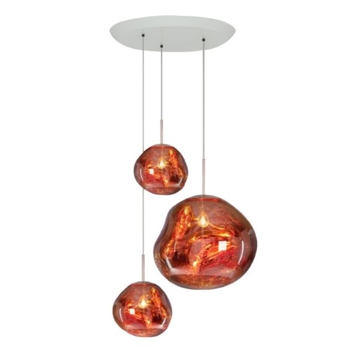 De Tom Dixon Melt trio round hanglamp koper (8719624688281) is ontworpen voor het design verlichtingsmerk Tom Dixon, één van de populairste merken op het gebied van design lampen en verlichting. Designer Tom Dixon is verantwoordelijk voor deze fantastische lamp. Het assortiment van Tom Dixon waar de Melt trio round hanglamp koper onderdeel van is, is verdeeld in verschillende groepen. Dit zijn tafellampen, hanglampen, plafondlampen, wandlampen en vloerlampen. De Tom Dixon Melt trio round hanglamp koper is Ø 81 cm breed en 141 cm hoog. De lamp is vervaardigd van de materialen Polycarbonaat en wordt standaard geleverd met een snoerlengte van 250 cm. Tom Dixon raad aan dit armatuur te combineren met een Max. 25W E14 lichtbron. Naast design is het licht een belangrijk aspect van de lamp, de Melt trio round hanglamp koper geeft Diffuus licht. De Tom Dixon Melt trio round hanglamp koper is goed ontvangen in de wereld van design verlichting en is daarom onderscheiden met de design award. Alle Tom Dixon design lampen kenmerken zich door hun eigen vorm en uitstraling.